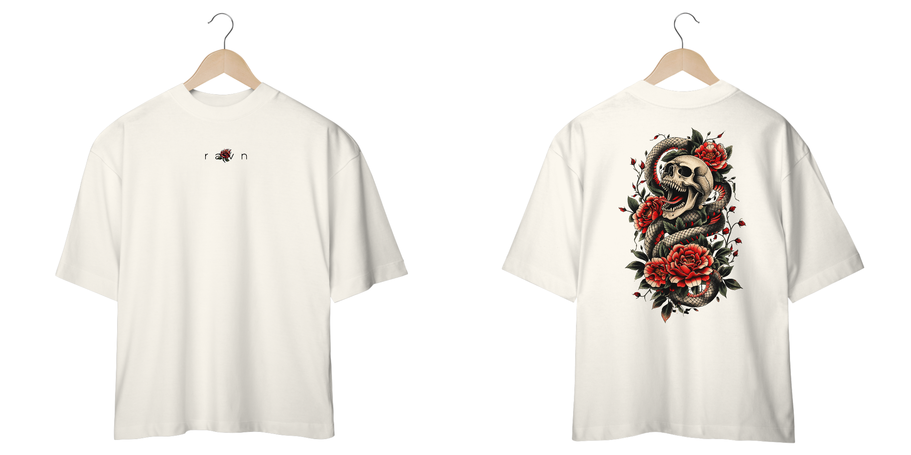 A serpente se enrosca na morte e floresce entre espinhos — uma dualidade brutal entre o perigo e o desejo.